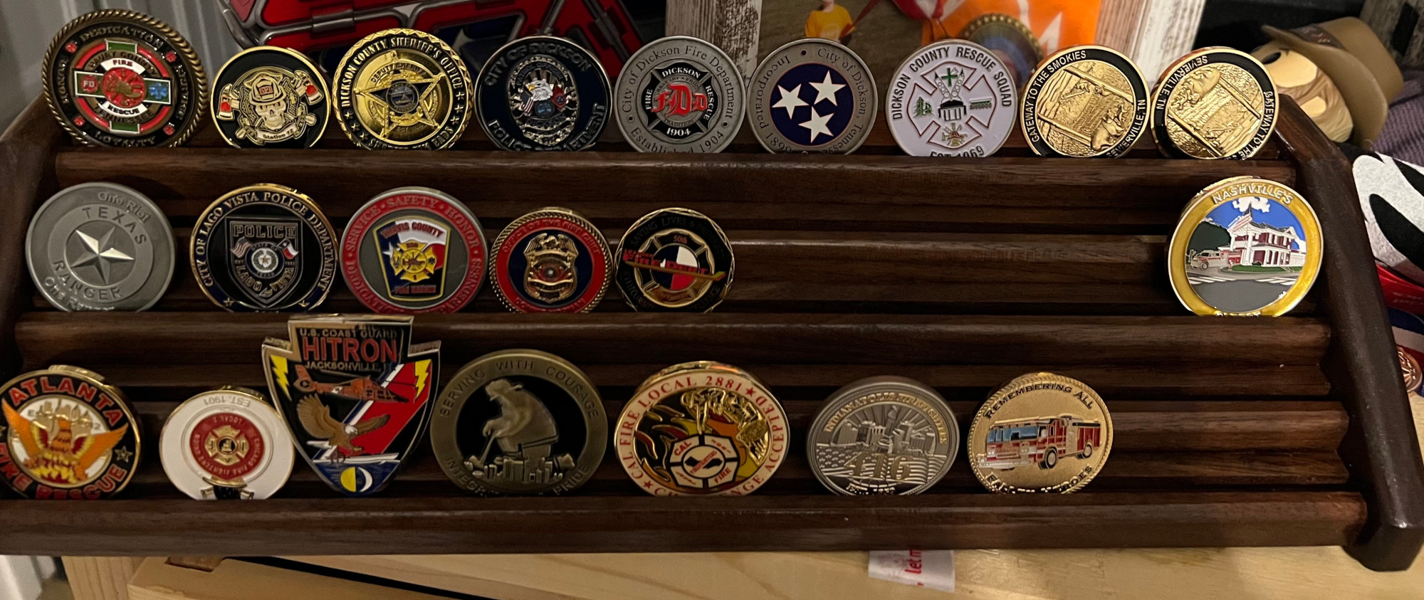 Thank you Chief Sesler of the Dickson Fire Department for making me the cool display case for my challenge coins!