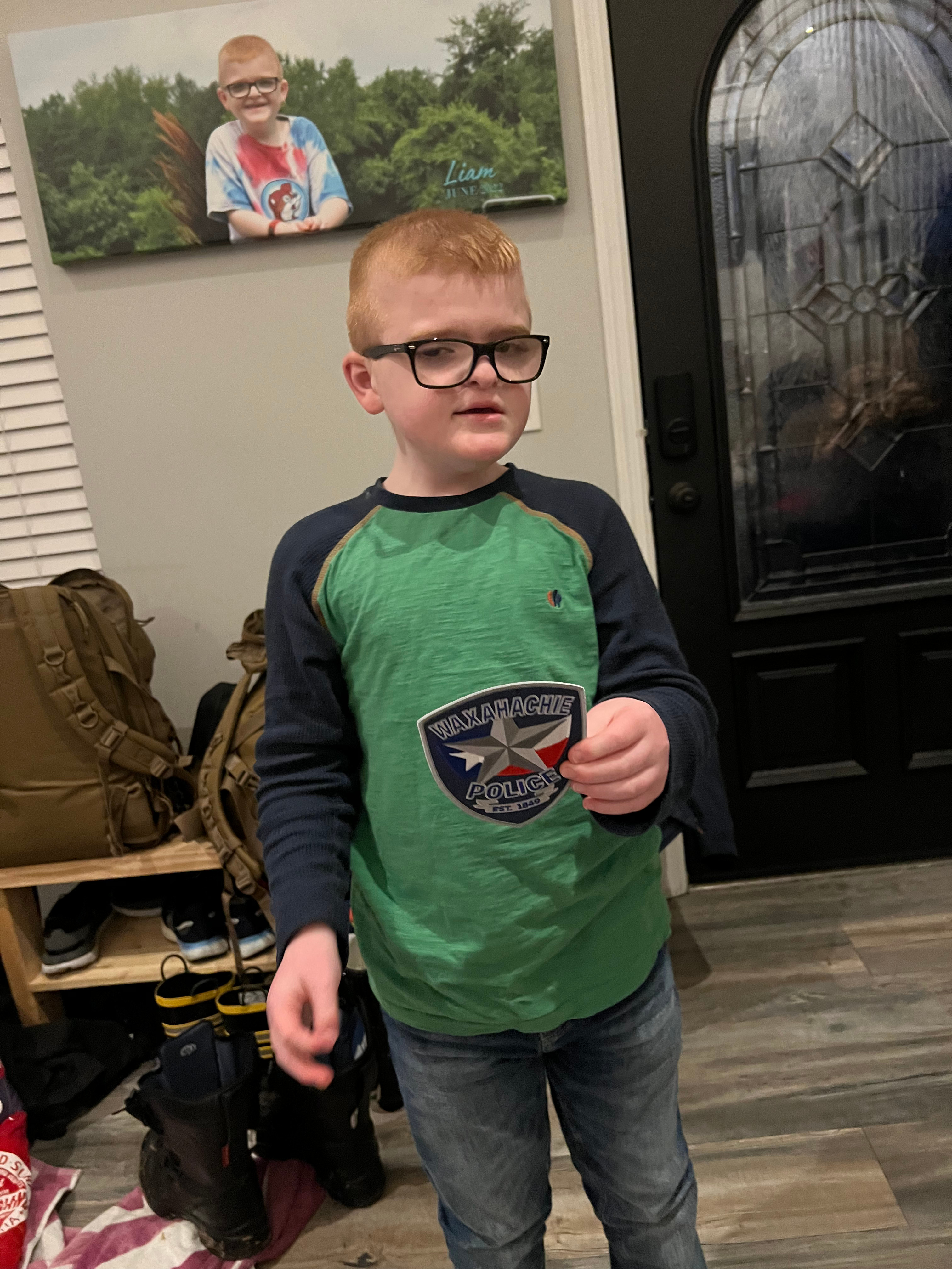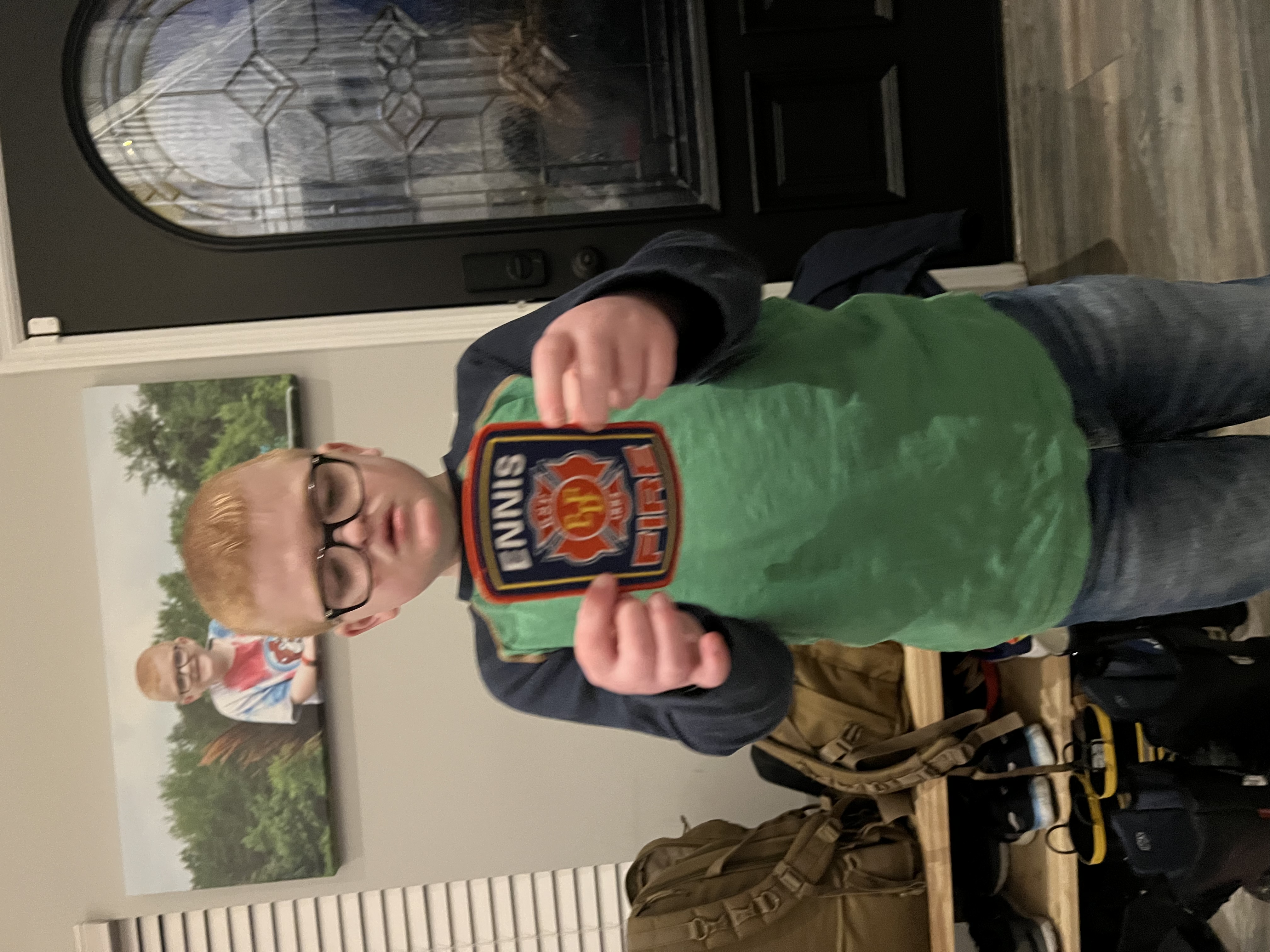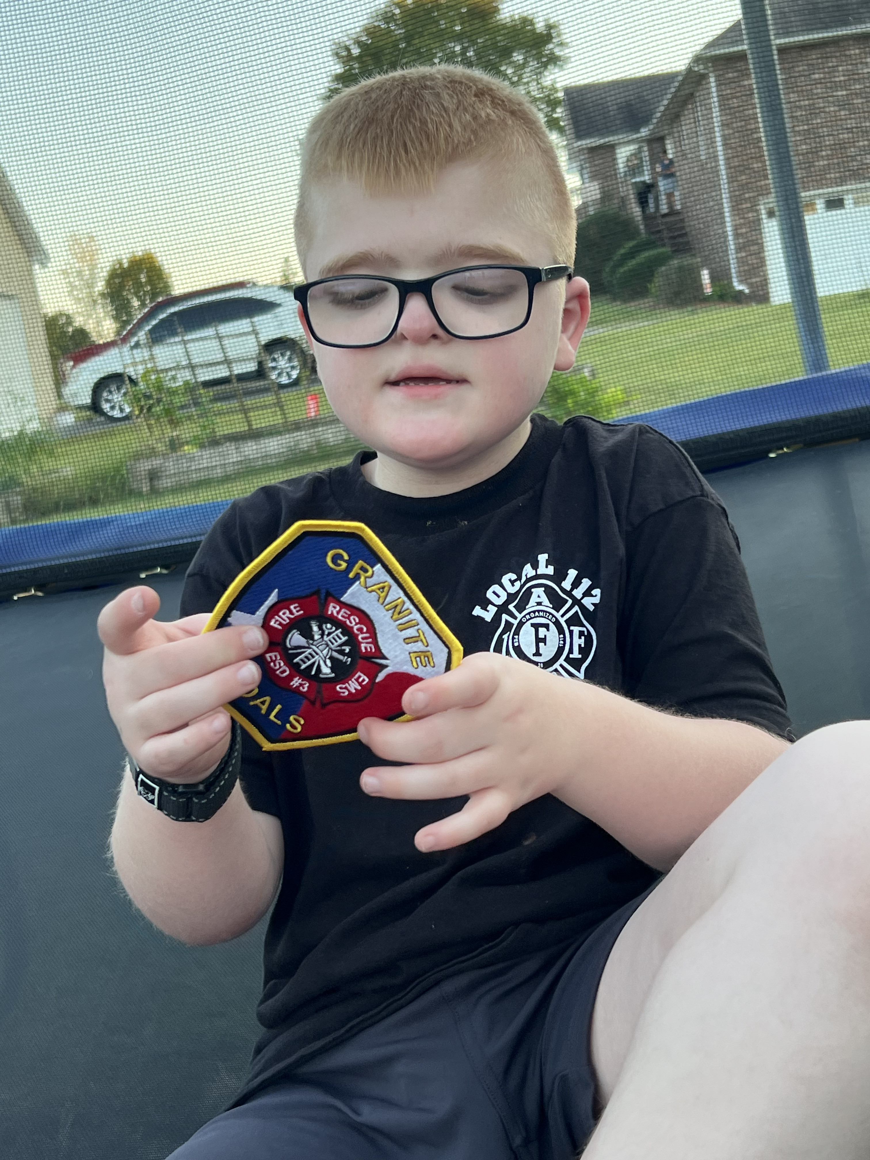 I love Santa, Buc-ee's, fire trucks, and police cars. I enjoy visiting the fire station and hanging out with the firefighters. I collect fire, police, and EMS patches from places we visit, but I would like to expand my collection.