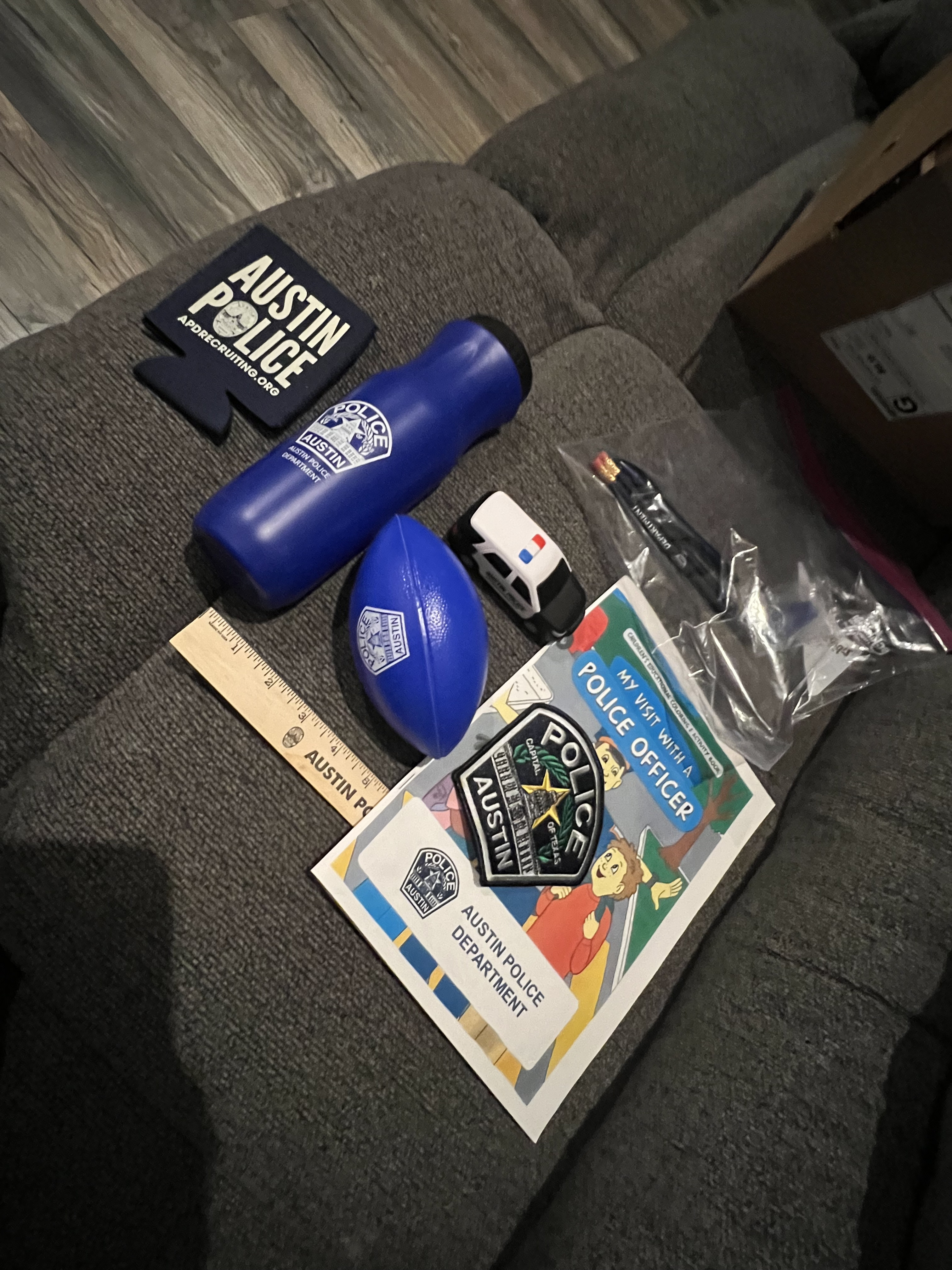 Thank you Tony Hogue and the Austin Police Department for all the cool stuff!!