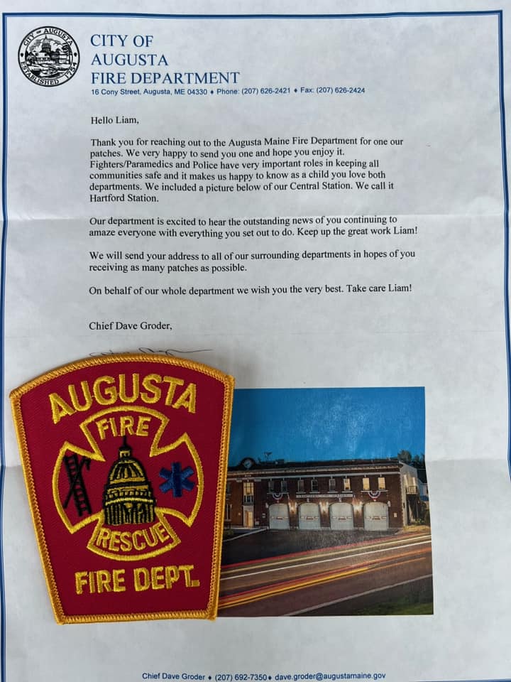 Thank you Chief Groder and Augusta Fire Rescue for the patch and kind letter!!
